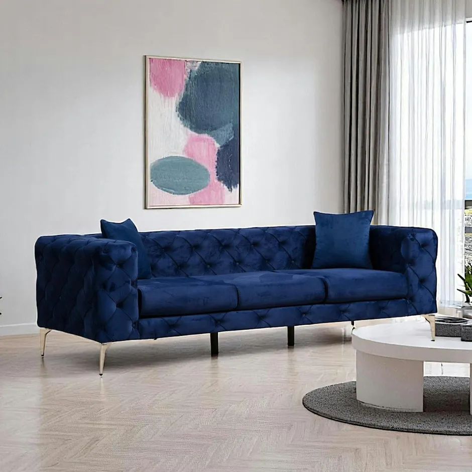 DOVER Canapés 3 Places|Canapés En Tissu|Canapé 3 places bleu nuit en velours capitonné