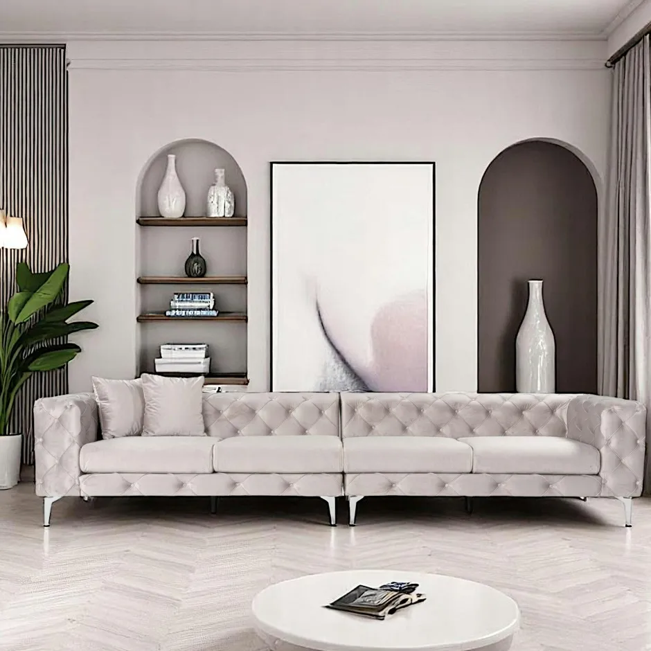 DOVER Canapés 3 Places|Canapés En Tissu|Grand canapé 4 places gris en velours capitonné