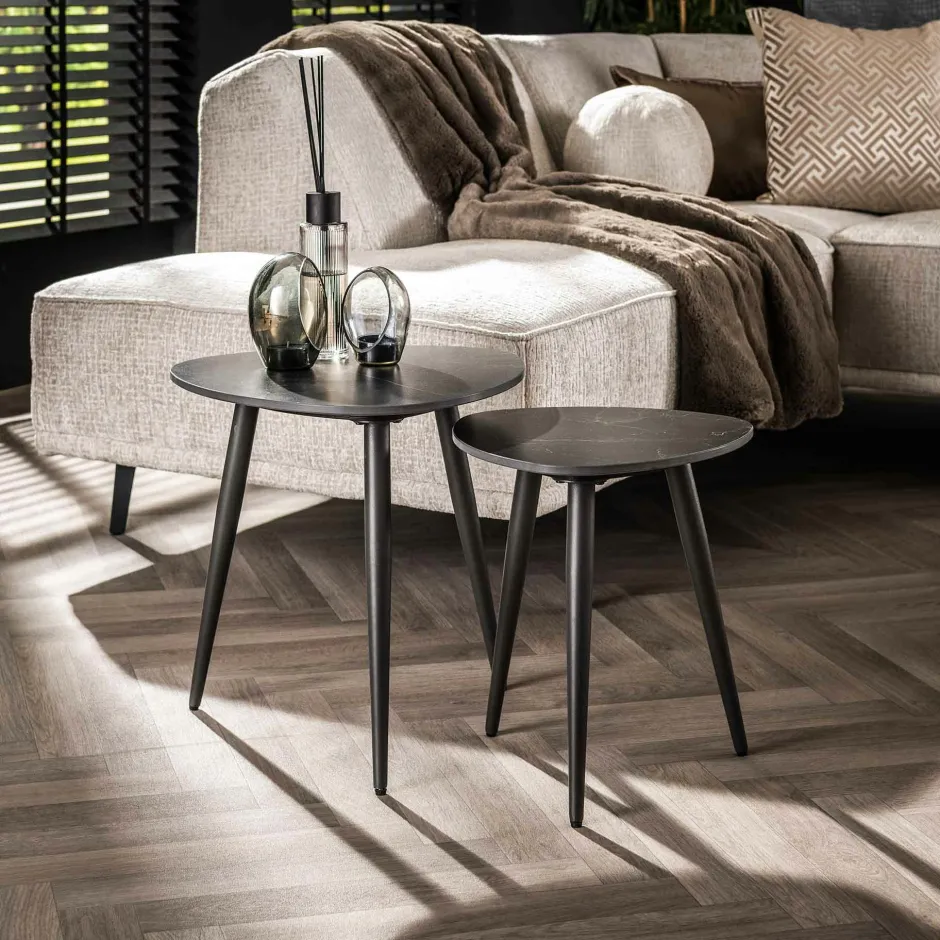 GALWAY Univers Déco·Design Contemporain|Tables Basses Gigognes|Table gigogne en céramique noire forme triangulaire (lot de 2)