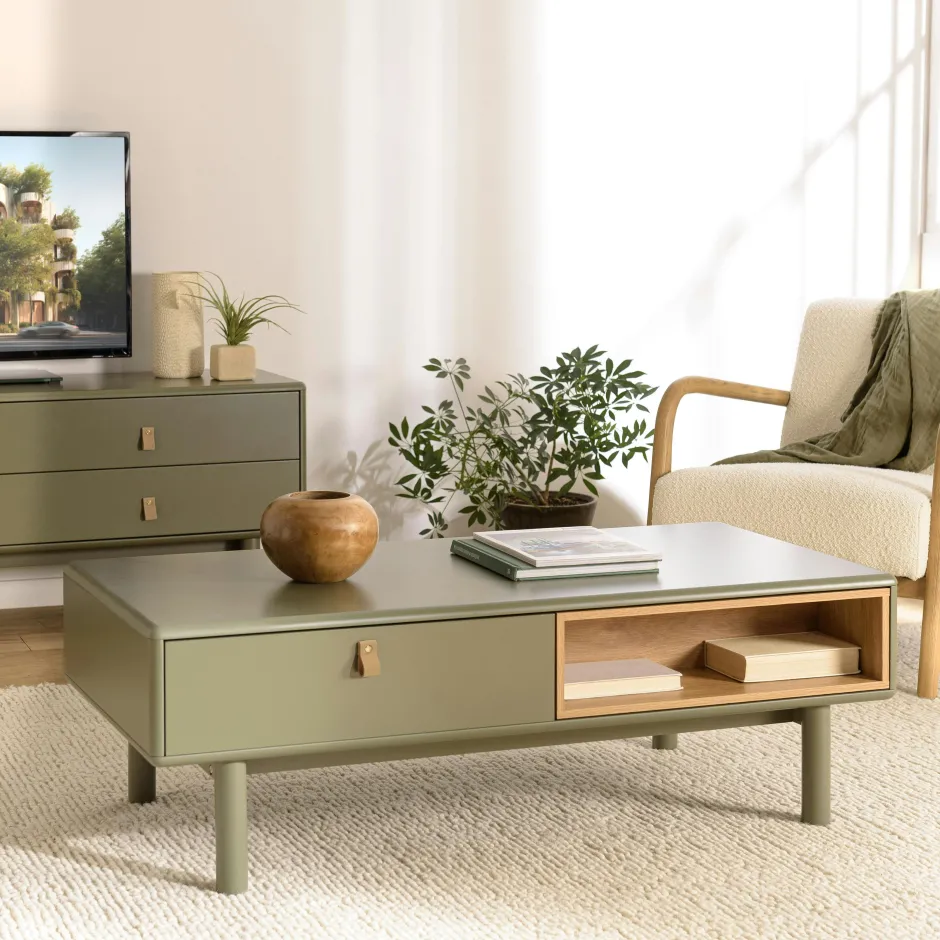 GUILIN Meubles Tv En Bois|Meuble TV 2 tiroirs 1 porte bois vert nature