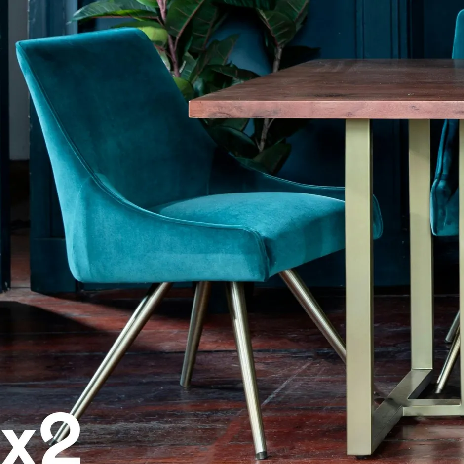 HOBART Chaises Capitonnées|Chaises Velours|Chaise velours bleu lagon (lot de 2)