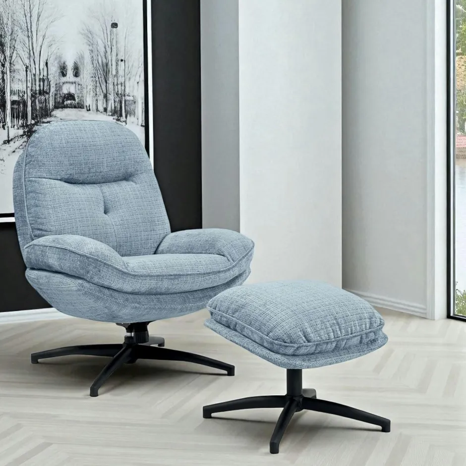 IENA Fauteuils En Tissu|Fauteuil détente bleu acier pivotant avec repose-pieds