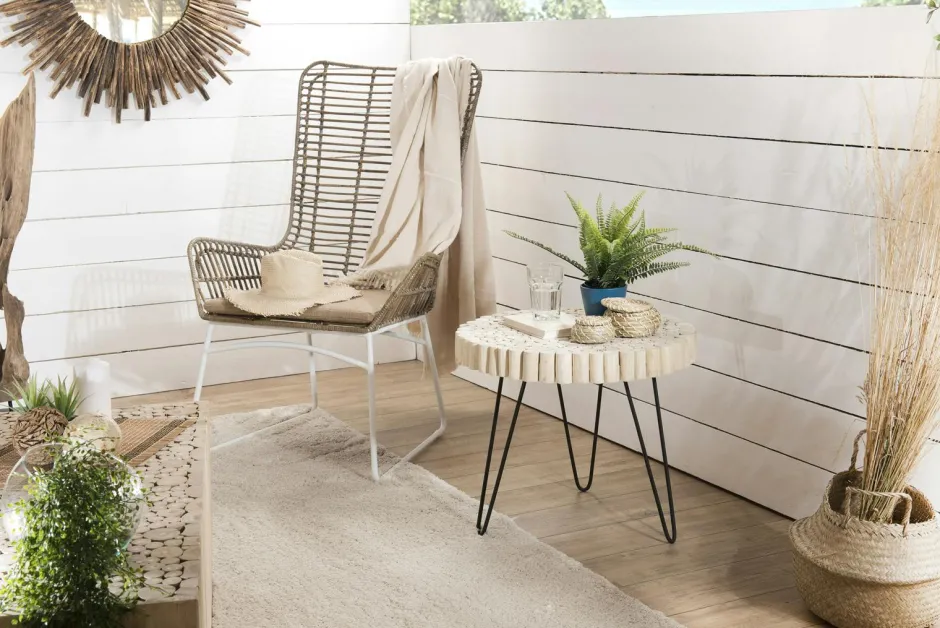 Jaipur Bouts De Canapé En Métal|Bouts De Canapé En Bois|Bout de canapé bois de teck métal forme ronde