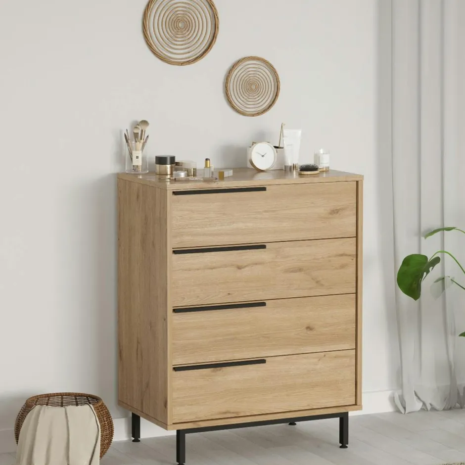 JENA Commodes Blanches|Commodes En Bois|Commode haute blanche à détails noirs, 4 tiroirs