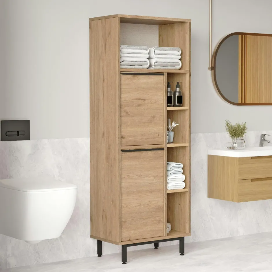 JENA Meubles De Salle De Bains·Rangement Salle De Bains|Colonne salle de bains moderne effet bois – 2 portes