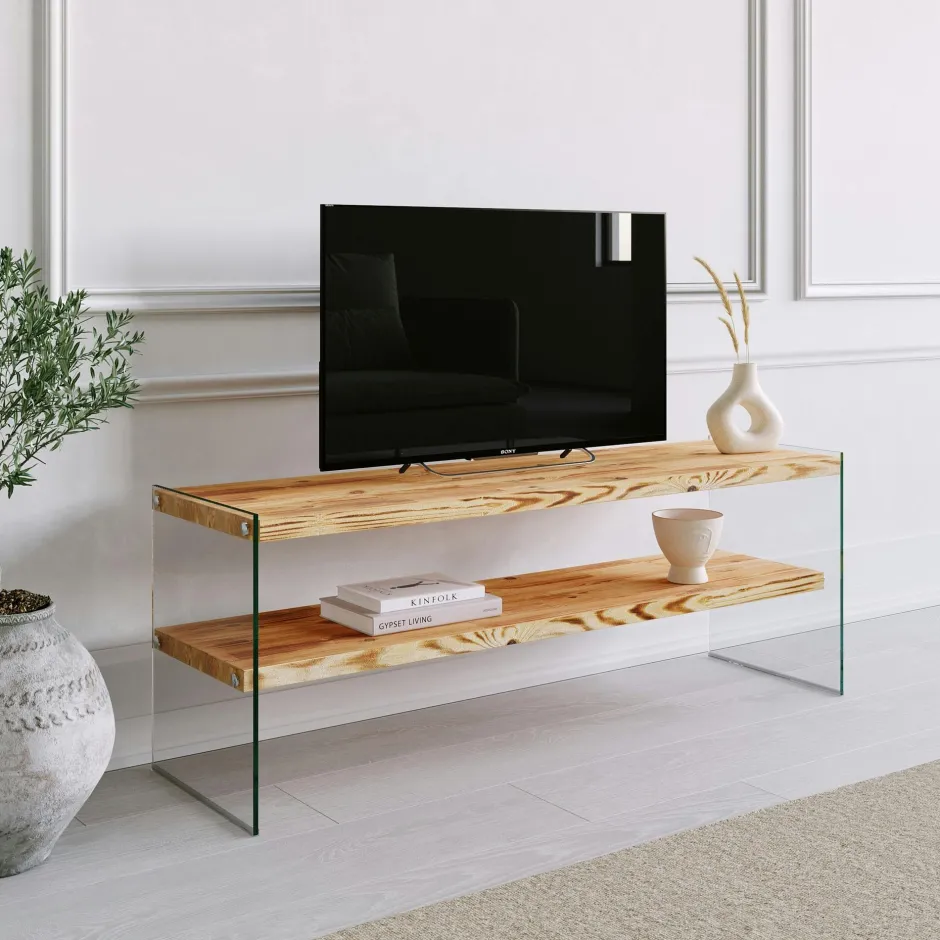 LHASA Meubles Tv En Bois|Meuble TV en bois brun et verre – 2 niveaux