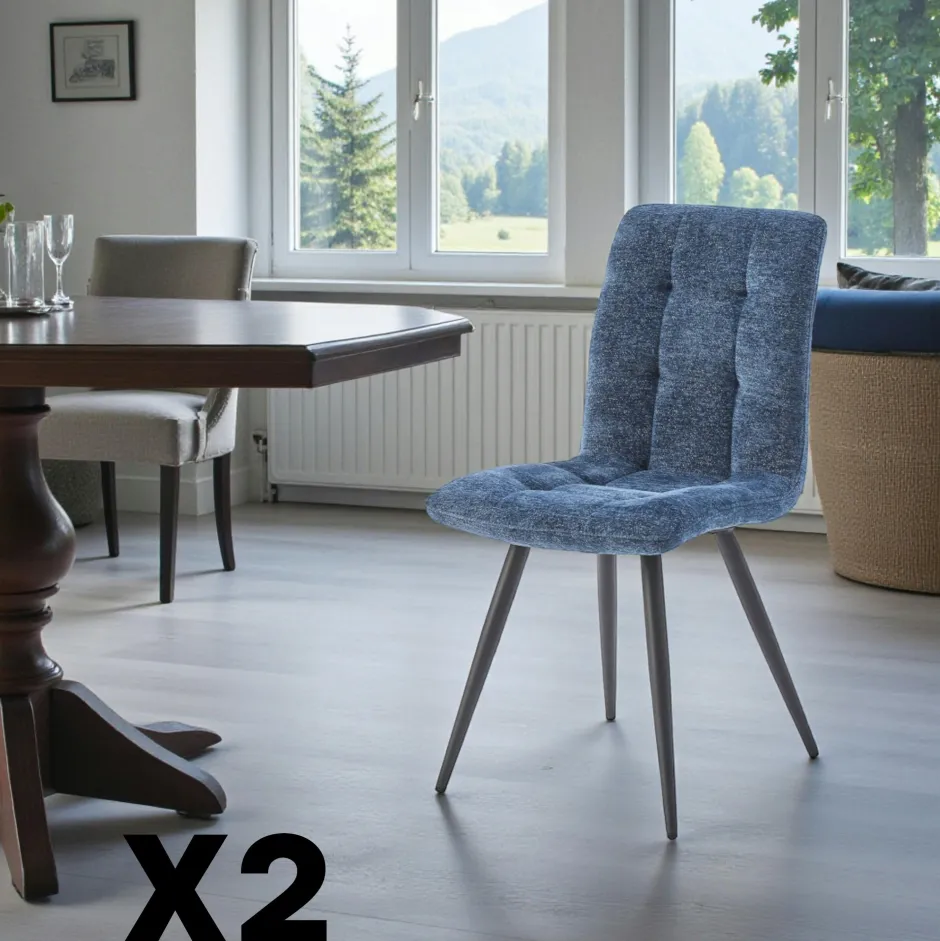 LOMBARDIE Chaises Contemporaines|Meubles De Cuisine·Chaises|Chaise en tissu anthracite motif damier (lot de 2)
