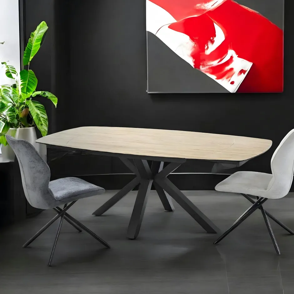 LOMBARDIE Tables À Manger En Céramique|Tables À Manger Extensibles|Table extensible en céramique forme ovale effet bois 140-200 cm
