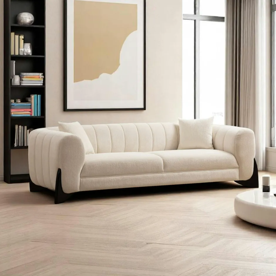 LUCCA Canapés 3 Places|Canapés En Tissu|Canapé 3 places écru – pieds design noirs