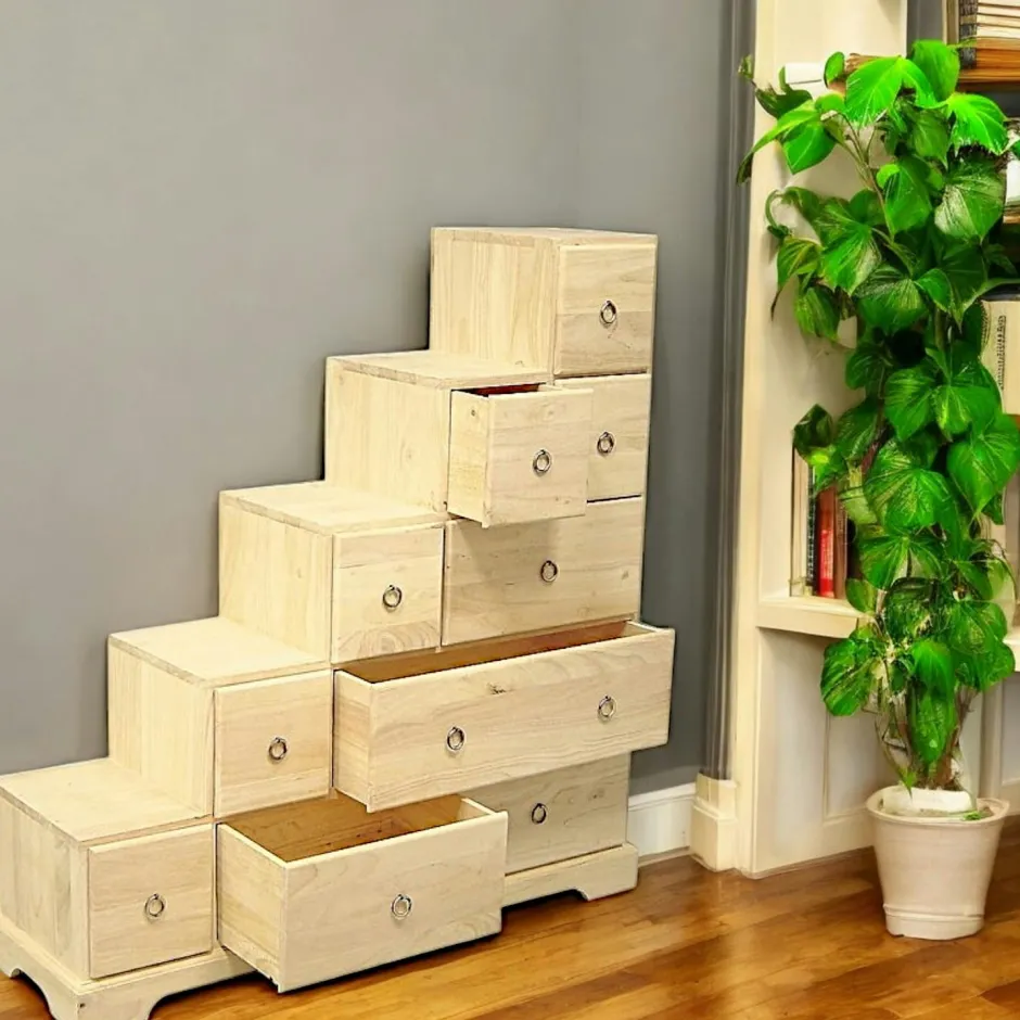 Maori Bibliothèques En Bois|Bibliothèques En Bois|Meuble Escalier « côté gauche » Hévéa 10 tiroirs 98x30x102cm