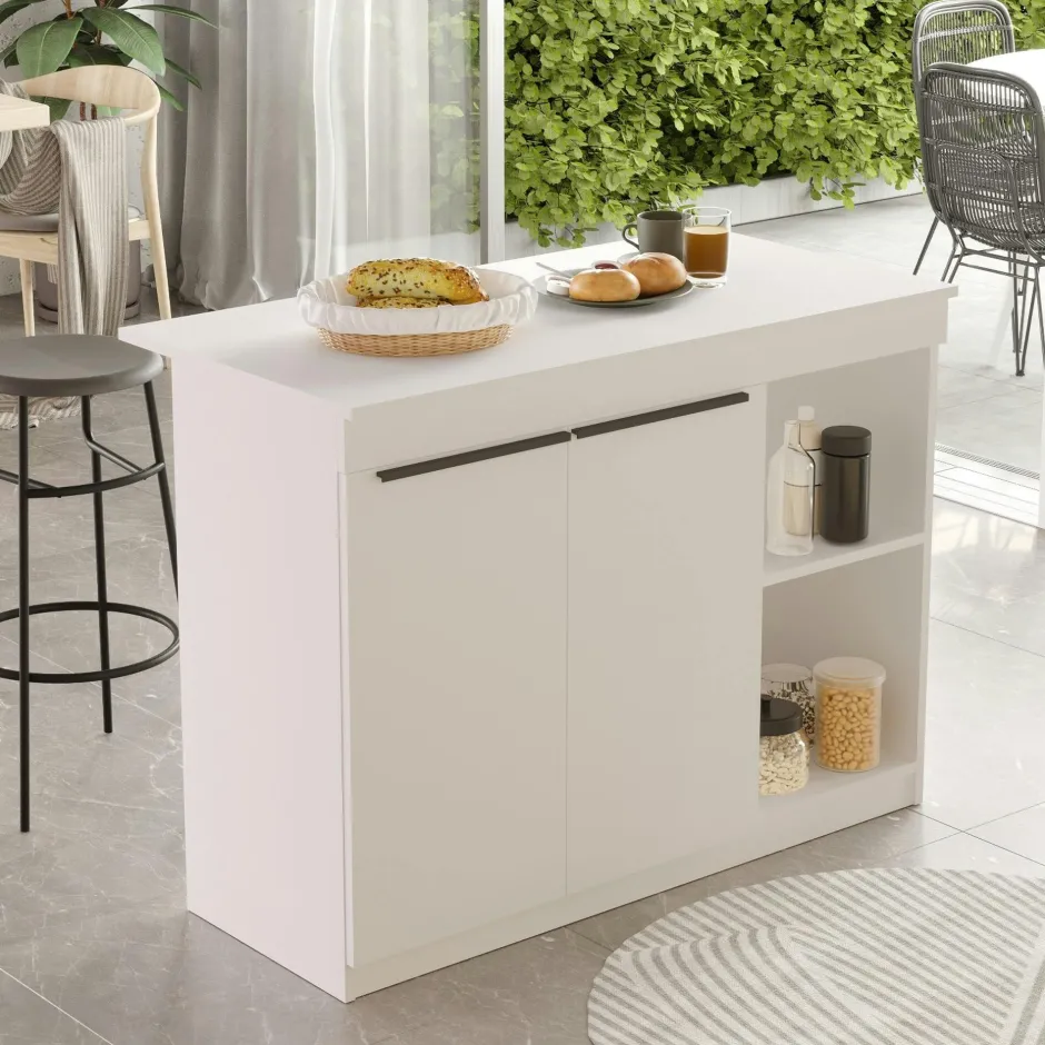 MARFA Meubles De Salle À Manger·Meubles Bar|Bar séparation cuisine ouverte blanc, 2 portes