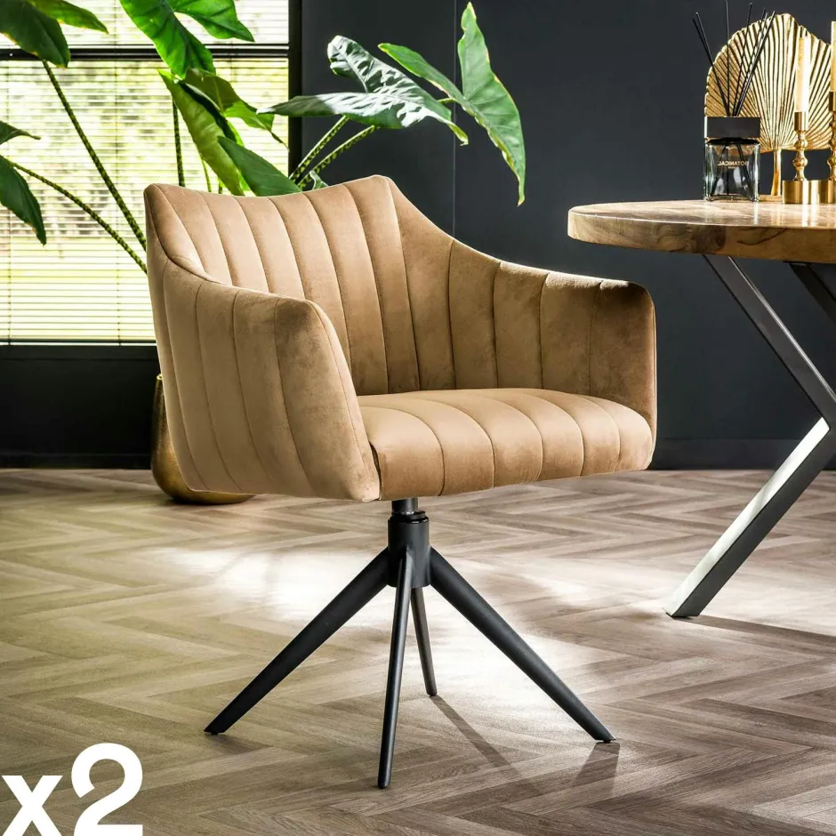 Melbourne Chaises Avec Accoudoirs|Chaises Contemporaines|Fauteuil pivotant de table en velours gris à larges bandes (lot de 2)