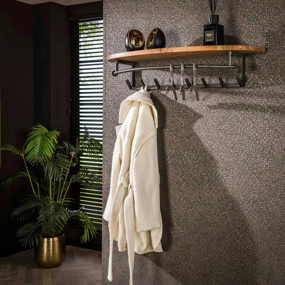 Melbourne Meubles D’Entrée·Portemanteaux|Portemanteaux Industriels|Portemanteau mural 8 accroches 1 étagère ronde en bois