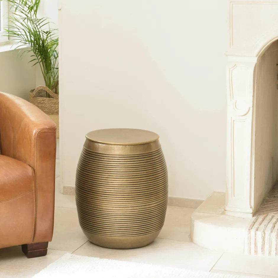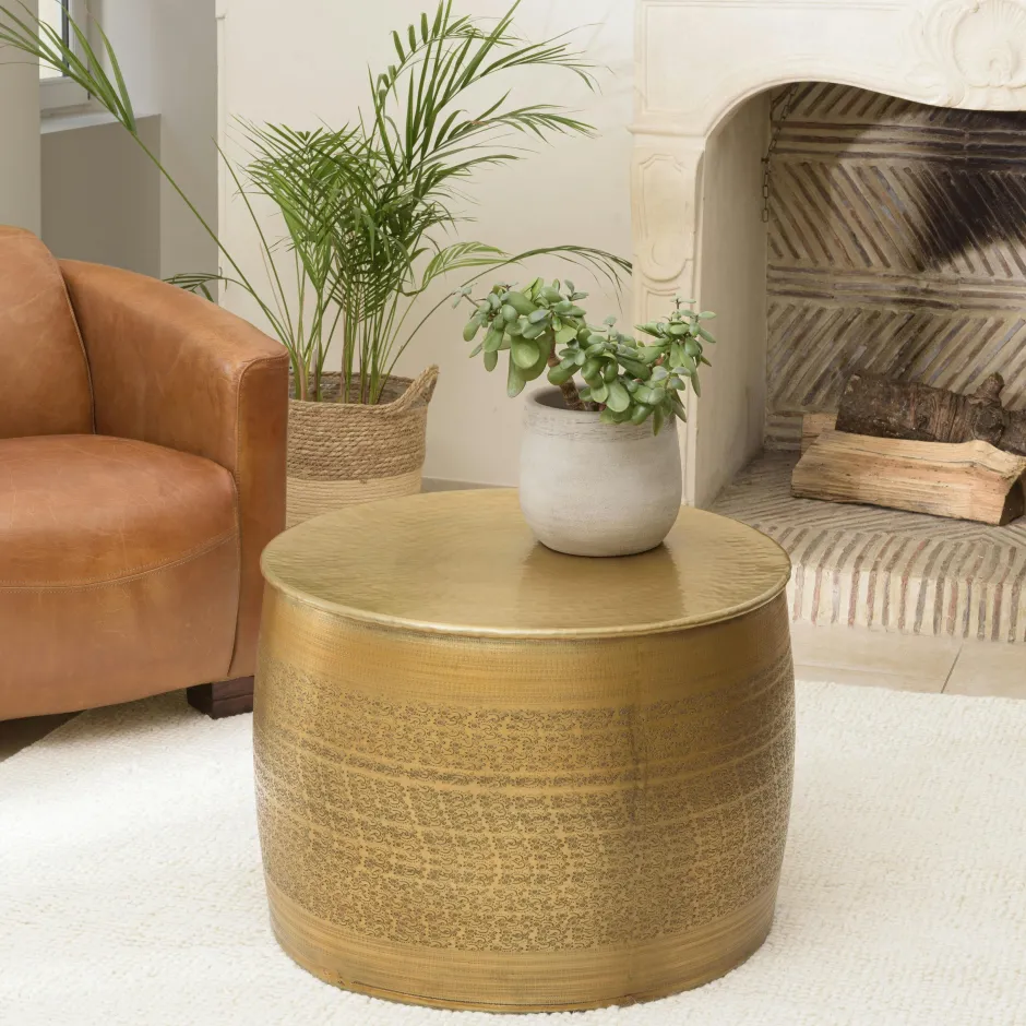 NADOR Tables Basses Rondes|Table de salon ronde alu doré antique motifs orientaux