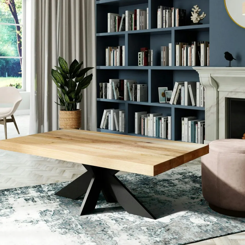 | Composition : | Chêne rustique massif origine Europe Produit fabriqué en Europe. La surface du plateau peut afficher des stries qui contribuent à l’authenticité de ce meuble. |