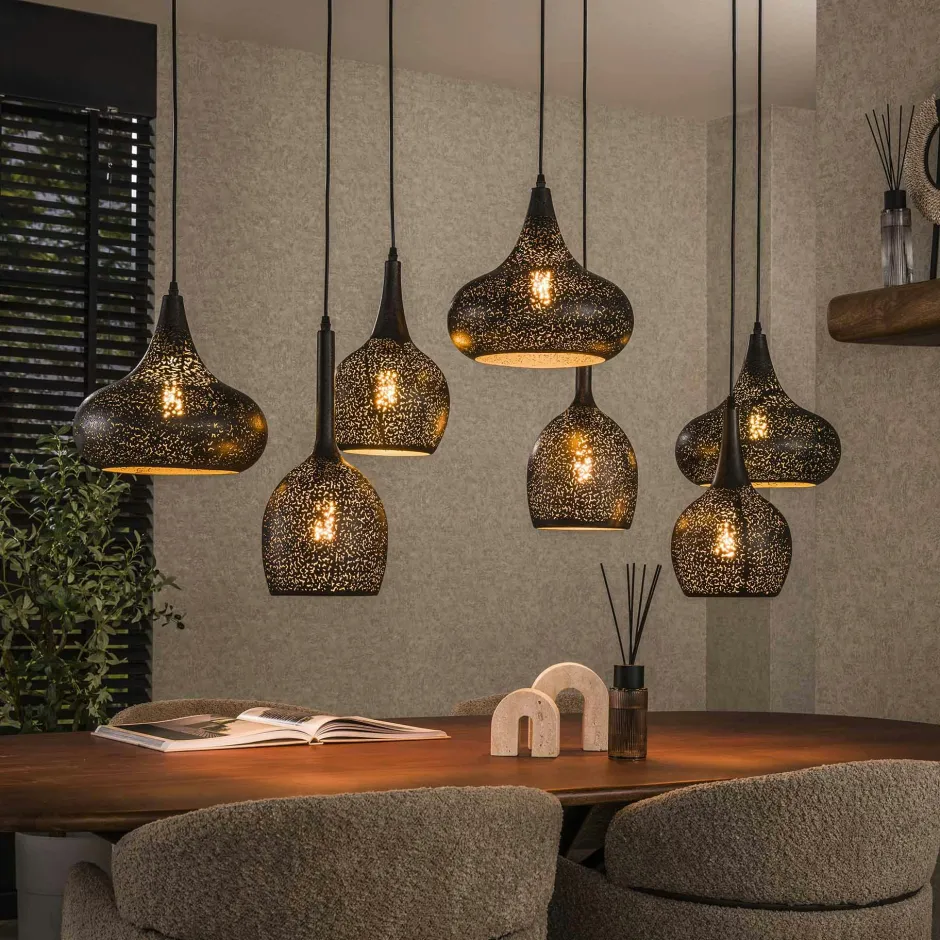 RALF Lampes À Poser·Lampe Style Industriel|Suspensions / Lustres|Suspension de table 7 abat-jour métalliques ajourés