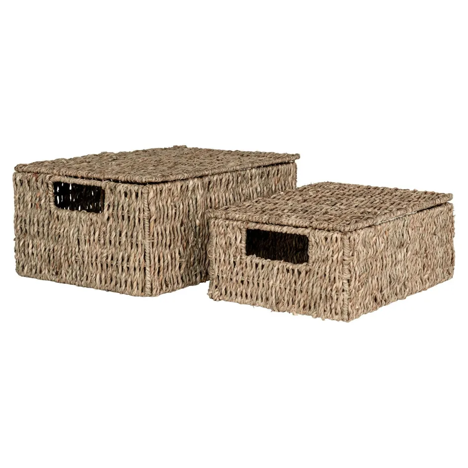 Rangements Déco·Paniers / Boîtes De Rangement|Vannerie Rotin|Panier de rangement avec poignées et couvercle en jonc de mer (lot de 2)