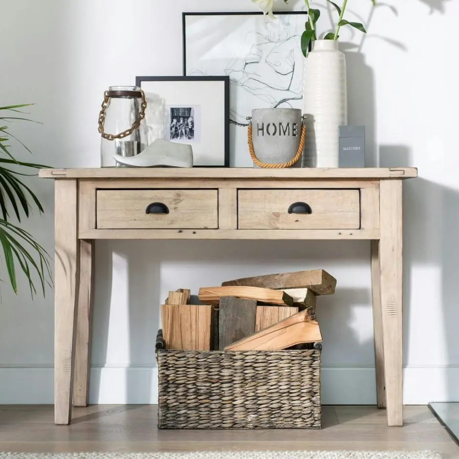 SALERNE Univers Déco·Maison De Campagne|Univers Déco·Scandinave Hygge|Console 2 tiroirs bois recyclé clair
