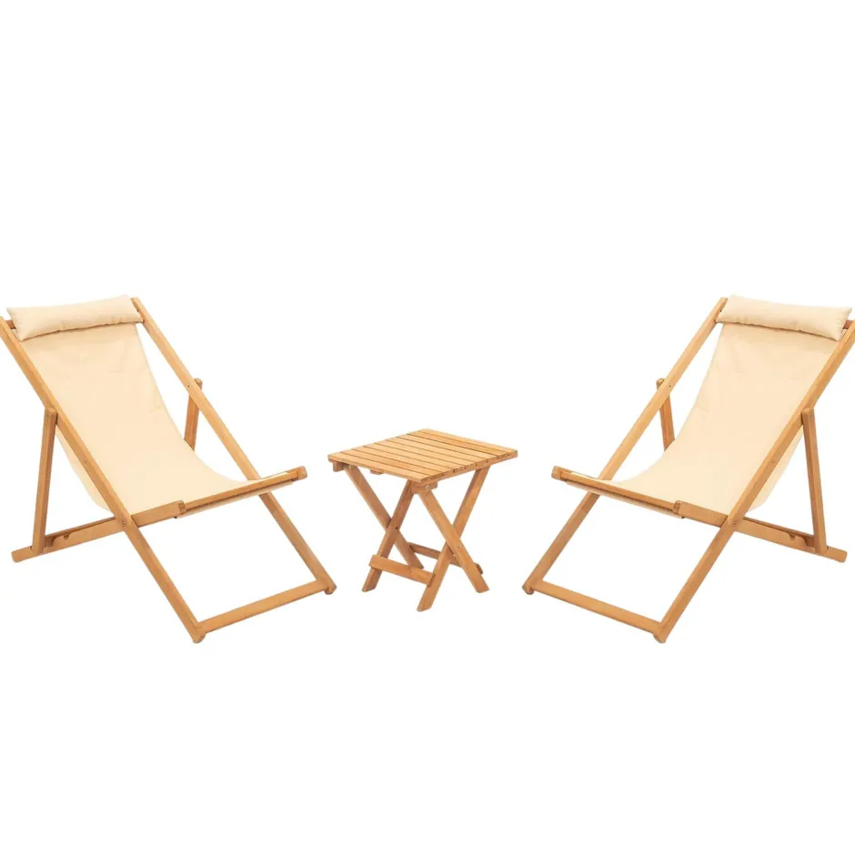 | Informations particulières : | Tous les éléments sont pliants pour optimiser l’espace et faciliter le rangement. 1 table d’appoint, 2 chiliennes inclinables. Dimension des chaises : largeur : 59 cm, hauteur : 90 cm, profondeur : 44 cm, longueur fermée : 128 cm (2 pièces). Dimensions de la table basse : largeur : 40 cm, hauteur : 40 cm, profondeur : 40 cm. Protection bois à base d’eau pour assurer un usage de ces meubles en extérieur. Toutefois nous vous conseillons pendant les périodes d’hiver de les mettre à l’abri et/ou de les recouvrir d’une bâche de protection. Pour protéger vos meubles nous vous conseillons d’appliquer une huile pour bois extérieur ou une lasure incolore tous les ans. Veillez à choisir un produit hydrofuge et anti-UV. |
