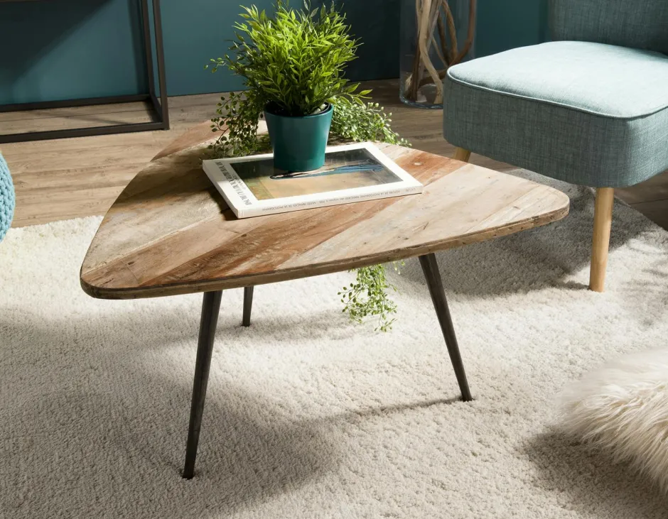 Swing Bouts De Canapé En Métal|Bouts De Canapé En Bois|Table d’appoint ronde teck recyclé métal GM