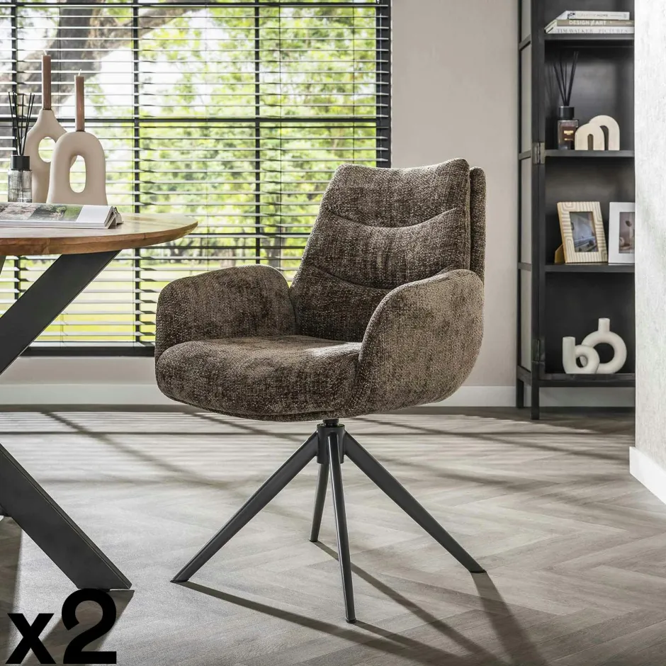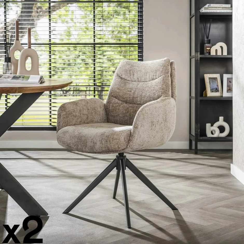 TAJ Fauteuils En Tissu|Fauteuil de table pivotant en velours beige (lot de 2)
