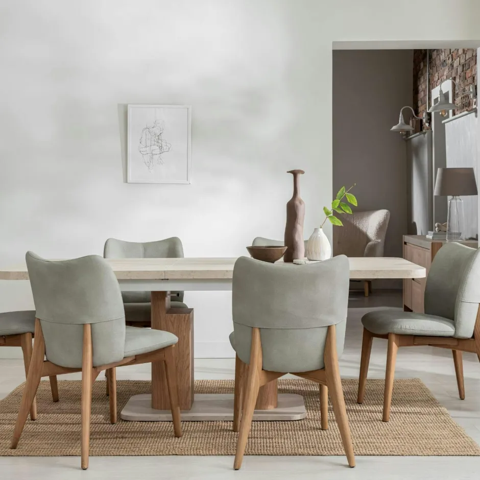 | Informations particulières : | Rallonge papillon intégrée. Plateau « effet travertin » en mélamine haute résistance offrant des propriétés comparables à celles de la céramique. Pieds en chêne massif. |