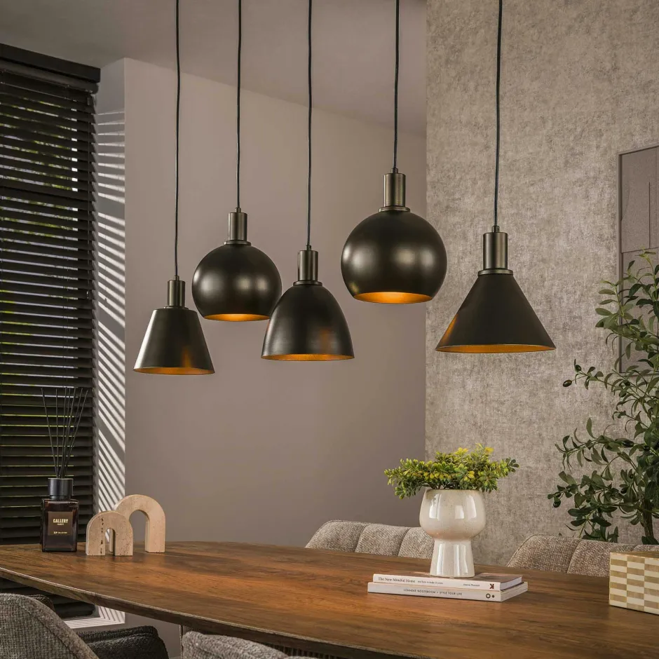 TRIBECA Lampes À Poser·Lampe Style Industriel|Suspensions / Lustres|Suspension îlot cuisine 5 abat-jour métal brun