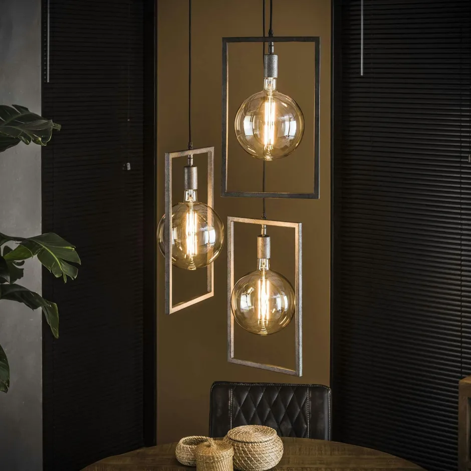TRIBECA Lampes À Poser·Lampe Style Industriel|Suspensions / Lustres|Suspension industrielle graphique 3 lampes cadre métal