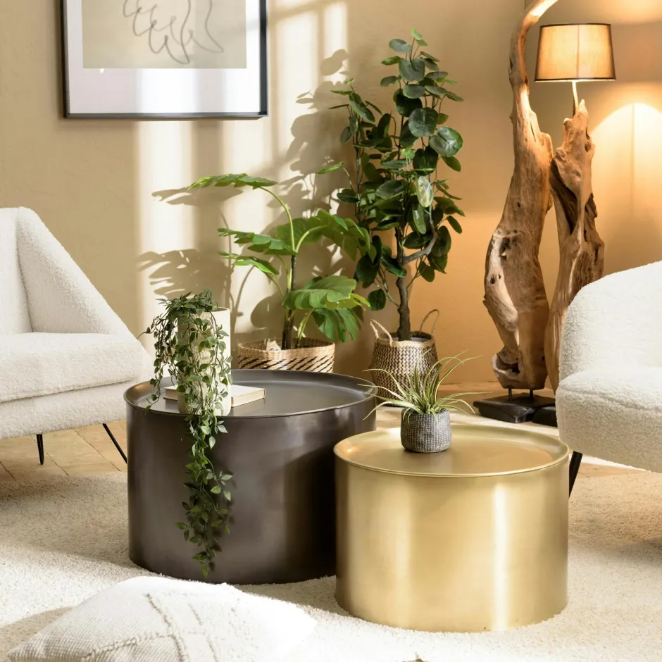 ZALA Tables Basses Design|Tables Basses Gigognes|Table basse gigogne ronde en métal gris / doré (lot de 2)