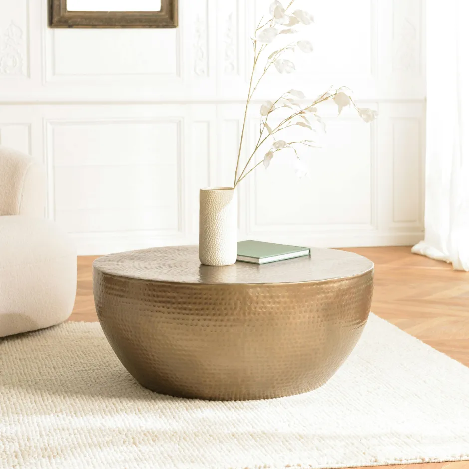 ZALA Tables Basses Rondes|Table basse métal doré antique forme coupelle